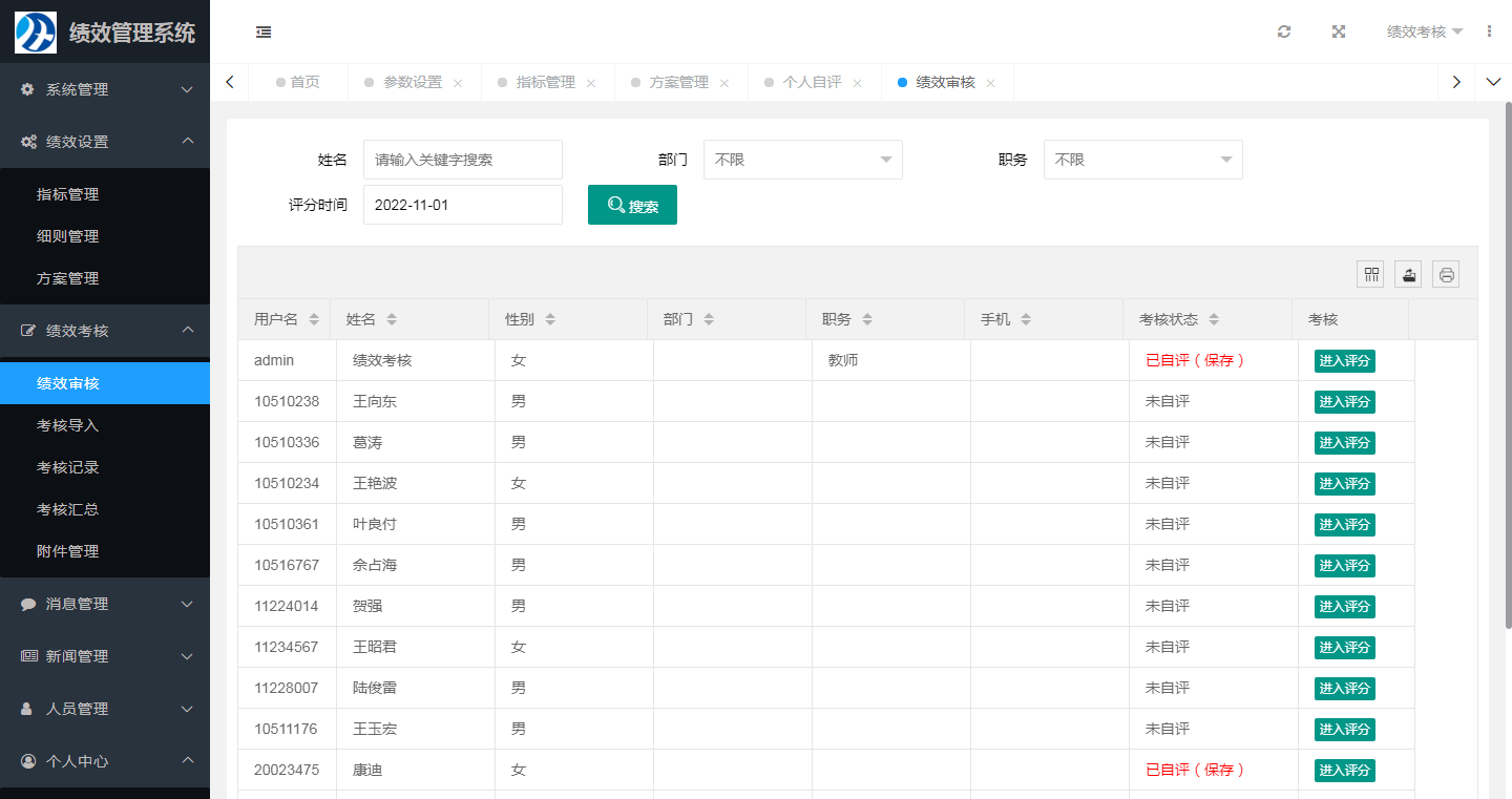1、系統(tǒng)實(shí)現(xiàn)兩級考核,個人自評+單位審核;